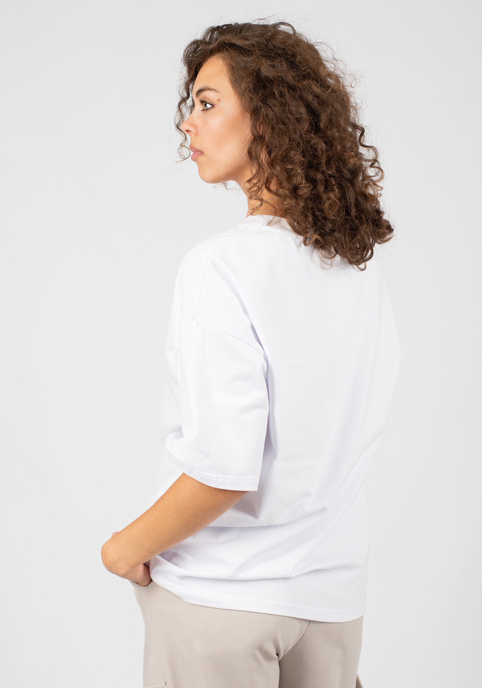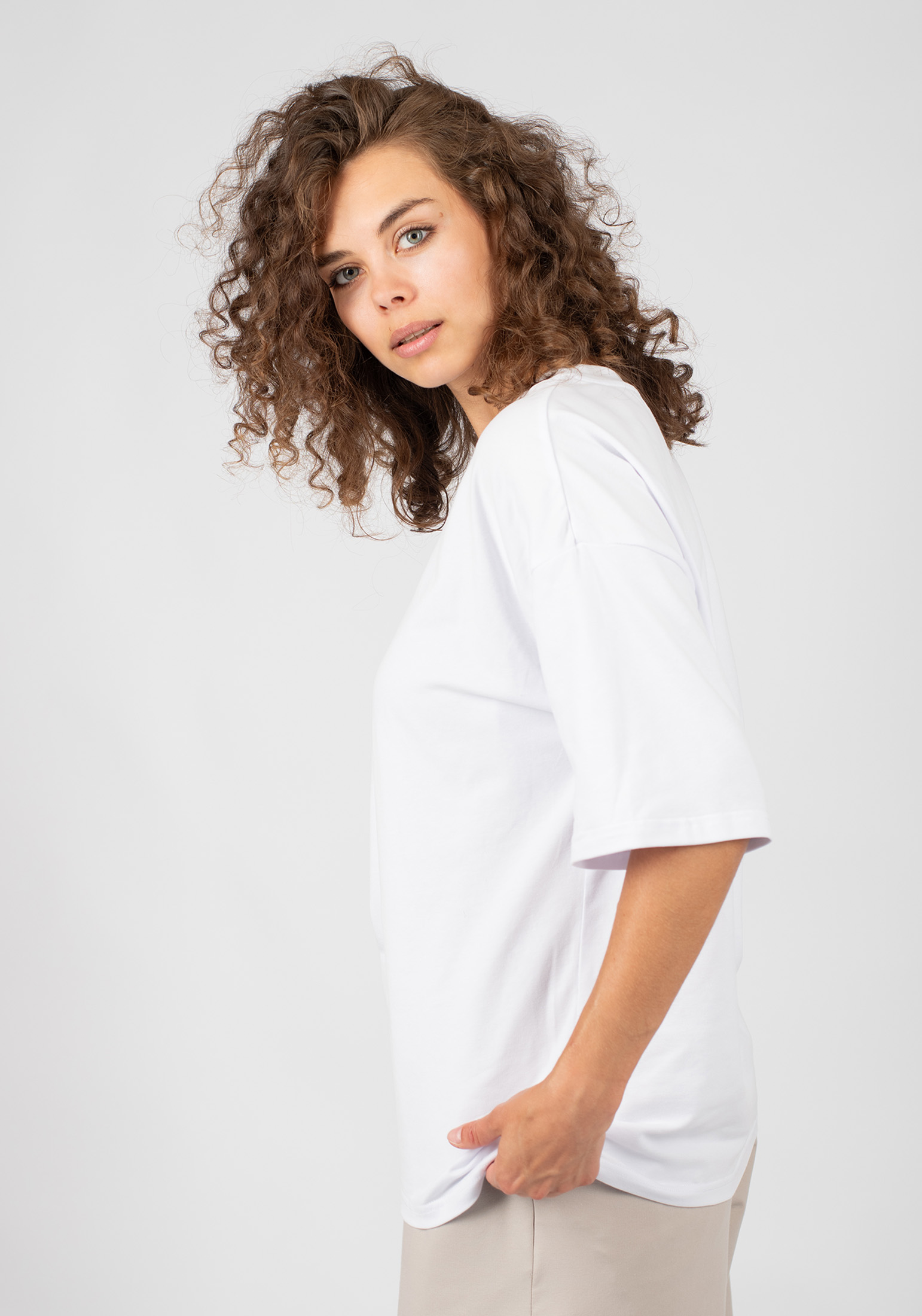 Стильная базовая женская футболка из премиального турецкого трикотажного полотна в стиле OVERSIZE. Модель прямого, свободного кроя, с круглым вырезом ворота и спущенной линией плеча. Плечевые швы и горловина изделия усилены силиконовой лентой, что исключает деформацию после многочисленных стирок. Женская футболка - это базовая вещь в гардеробе любой современной девушки и женщины, является одной из самых удобных, популярных и незаменимых моделей одежды круглый год, сделает образ изысканным и современным. Наши невероятно удобные футболки отлично сочетаются с шортами, джинсами, юбками, джоггерами, кюлотами. Свободный крой и элегантная форма рукавов не только придают изделию стильный и модный вид, но и гарантируют его обладательнице комфорт даже в самые жаркие дни. Футболка - самый универсальный предмет женского гардероба, который подходит под любой образ, от строгой классики до спортивного стиля. Гладить с изнанки. Стирка при t не более30С. Деликатный отжим, отбеливание запрещено.
