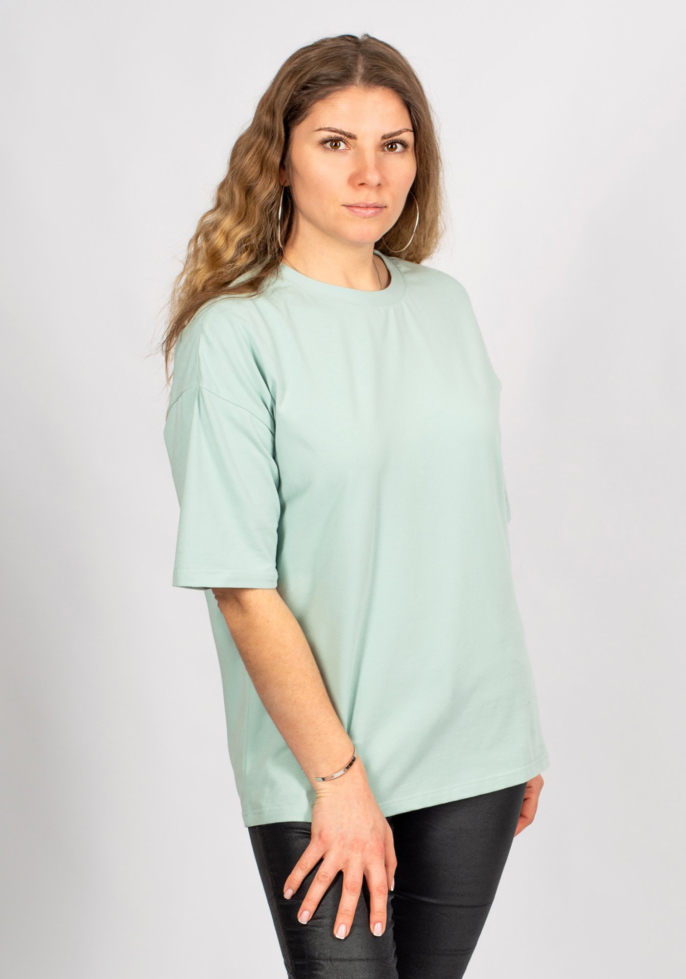 Стильная базовая женская футболка из премиального турецкого трикотажного полотна в стиле OVERSIZE с peach эффектом. Модель прямого, свободного кроя, с круглым вырезом ворота и спущенной линией плеча. Женская футболка - это базовая вещь в гардеробе любой современной девушки и женщины, является одной из самых удобных, популярных и незаменимых моделей одежды круглый год, сделает образ изысканным и современным. Наши невероятно удобные футболки отлично сочетаются с шортами, джинсами, юбками, джоггерами, кюлотами. Свободный крой и элегантная форма рукавов не только придают изделию стильный и модный вид, но и гарантируют его обладательнице комфорт даже в самые жаркие дни. Футболка - самый универсальный предмет женского гардероба, который подходит под любой образ, от строгой классики до спортивного стиля. Гладить с изнанки. Стирка при t не более30С. Деликатный отжим, отбеливание запрещено