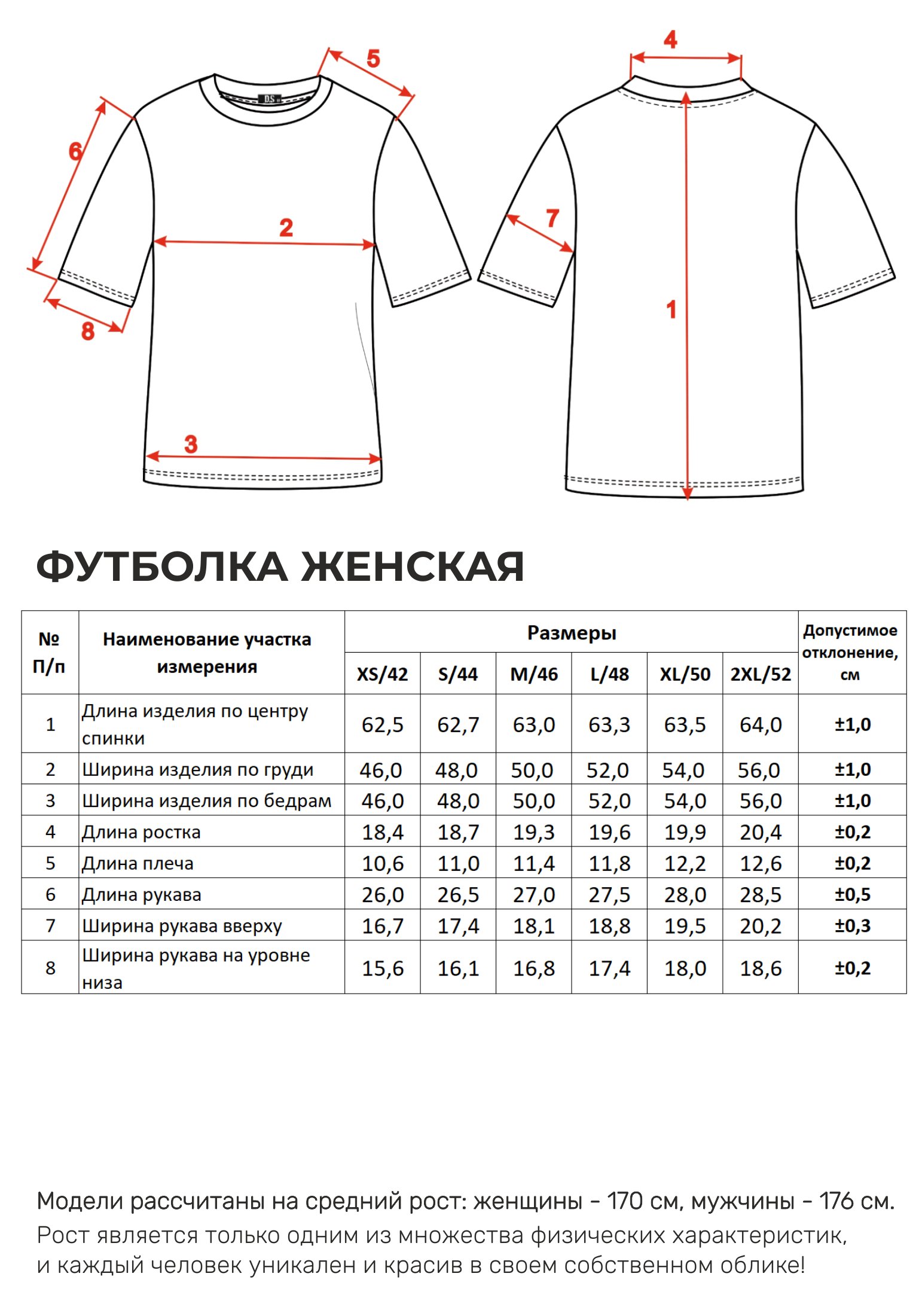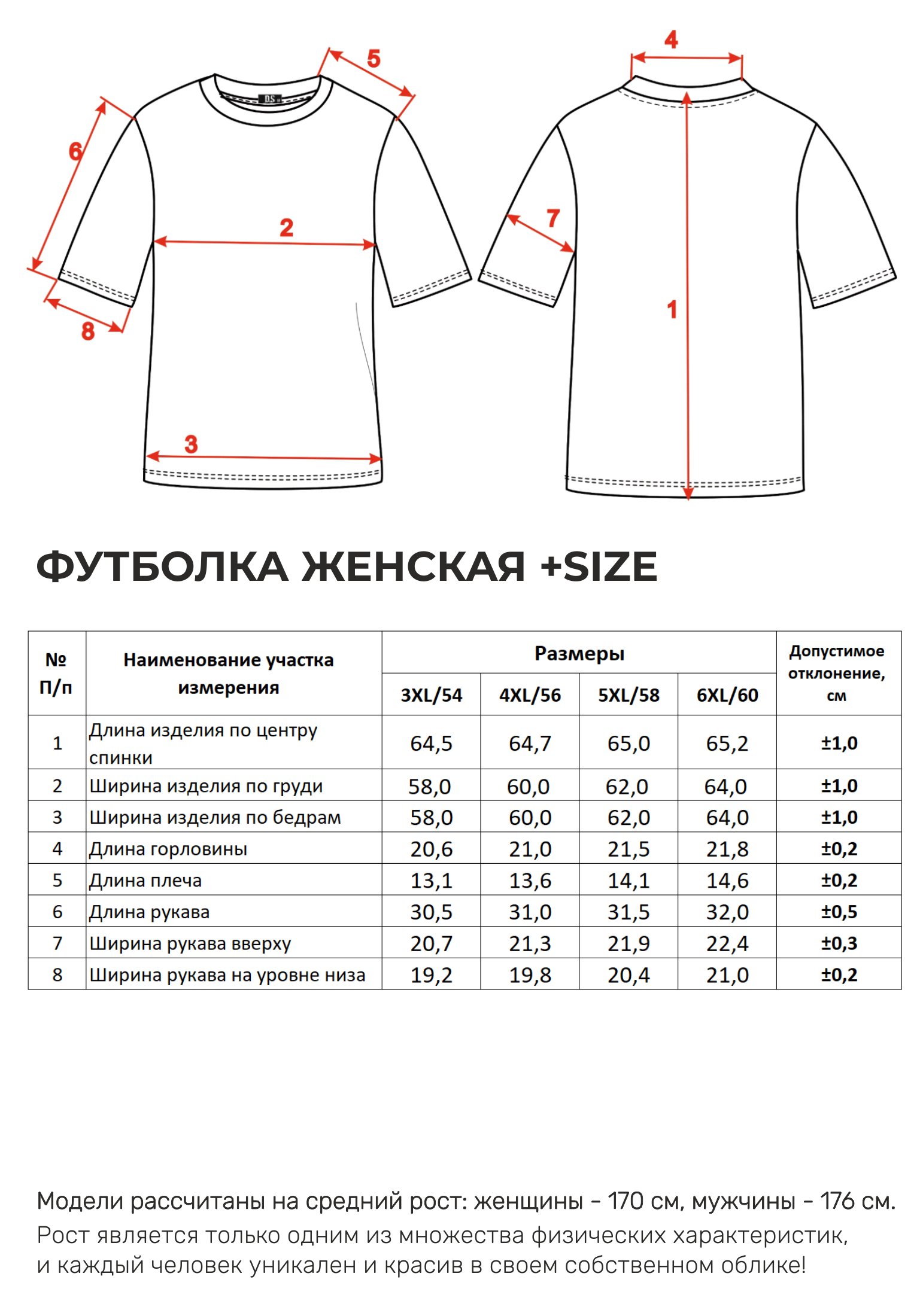 Параметры модели на фото -размер
