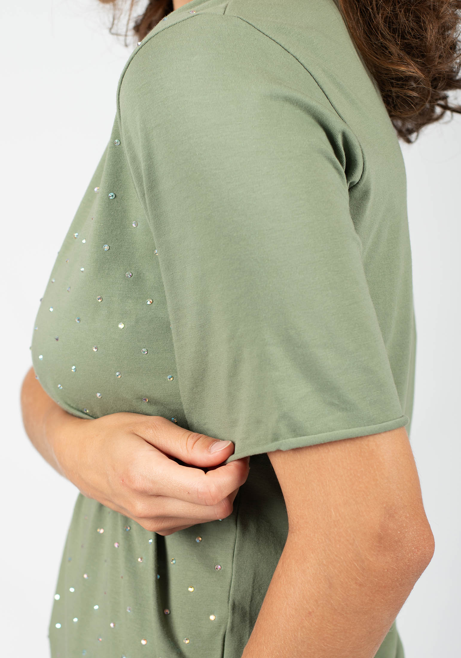 Уникальная трендовая женская футболка из премиального турецкого трикотажного полотна кулирная гладь. Футболка свободного силуэта, с удлинёнными рукавами и круглым вырезом горловины. Полочка изделия украшена россыпью сверкающих страз, что делает ее настоящим нарядным акцентом в Вашем гардеробе. Наши невероятно удобные, стильные футболки отлично сочетаются с шортами, джинсами и различной длины юбками. Свободный крой и элегантная форма рукавов не только придают изделию актуальный и модный вид, но и гарантируют его обладательнице комфорт даже в самые жаркие дни. Футболка - самый универсальный предмет женского гардероба, который подходит под любой образ, от строгой классики до спортивного стиля. Такая стильная нарядная модель идеально подойдёт в качестве подарка маме, подруге, дочке и любимой на праздник. Гладить с изнанки. Стирка при t не более 30С. Деликатный отжим, отбеливание запрещено. При соблюдении наших несложных правил ухода одежда DS будет радовать Вас долгое время!