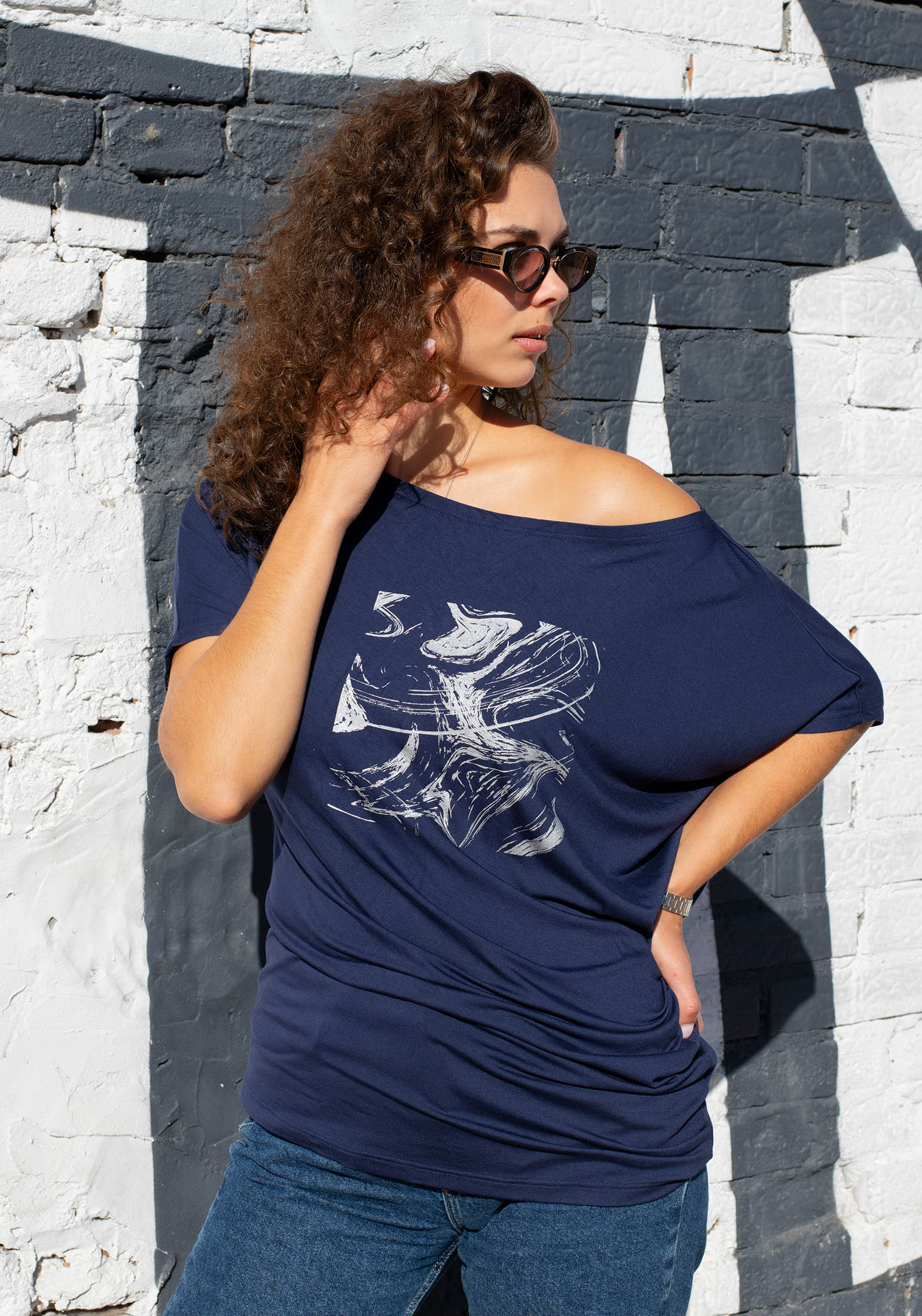 Уникальный женский лонгслив свободного кроя с укороченным рукавом, в стиле "Летучая мышь" с возможностью открыть одно плечо, выполнен из премиального турецкого полотна. На полочке изделия оригинальный фольгированный принт. Оригинальный дизайн обязательно привлечет к себе внимание. Качественный состав ткани обеспечивает комфорт при носке и гарантирует высокую износостойкость. Наш нарядный лонгслив отлично сочетается как с классическим пиджаком, брюками, юбками, так и с джинсами, является составной частью стиля сasual. Эластичный трикотажный лонгслив создаст неповторимый образ, который позволит вам одинаково стильно выглядеть на работе, в офисе, дома, а с дополнительными аксессуарами будет шикарен на праздниках и торжествах. Элегантный лонгслив является одной из самых удобных, популярных и незаменимых моделей одежды круглый год, сделает образ изысканным. Лонгслив свободного кроя - идеальное решение на каждый день. Такая форма изделия даёт ощущение комфорта, свободы и раскованности. Наша универсальная модель станет лучшим подарком жене, дочке, подруге, любимой или маме. Гладить с изнанки. Стирка при t не более 30С. Деликатный отжим, отбеливание запрещено. При соблюдении наших несложных правил ухода одежда DS будет радовать Вас долгое время!